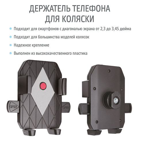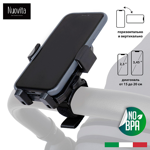 Держатель для телефона NUOVITA Evoluto необходимый аксессуар в мире современных технологий! Теперь не нужно искать телефон в кармане или сумочке, достаточно использовать специальный держатель с креплением — ваш  смартфон всегда будет на ручке коляски, в быстром доступе.