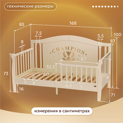 • Основание из ламелей создает условия для формирования здоровой костно-мышечной системы ребенка.