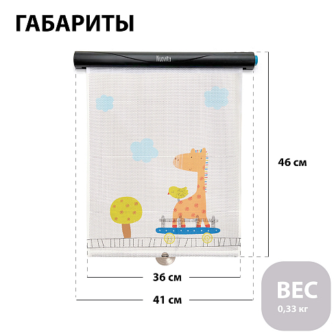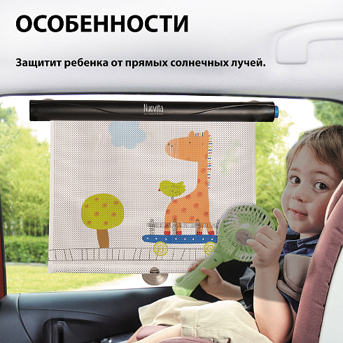 Солнцезащитная рулонная шторка для автомобиля Tenda Rotell – это аксессуар, который защитит ребенка от ярких солнечных лучей во время поездки в автомобиле. Фиксируется на стекло автомобиля при помощи присосок и вытягивается из рулона на желаемую длину, есть удобная кнопка сложения, а милый рисунок жирафа будет радовать ребенка во время поездки в автомобиле. Универсальна для всех моделей автомобилей и проста в установке. Легко чистится, помогает сохранить прохладу внутри автомобиля.
